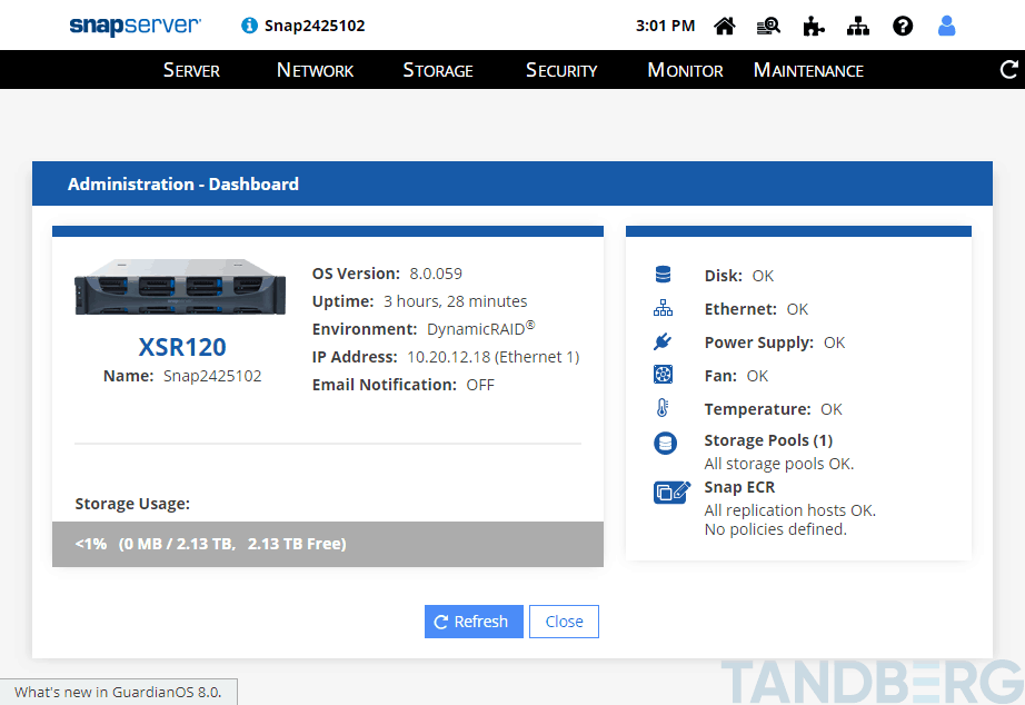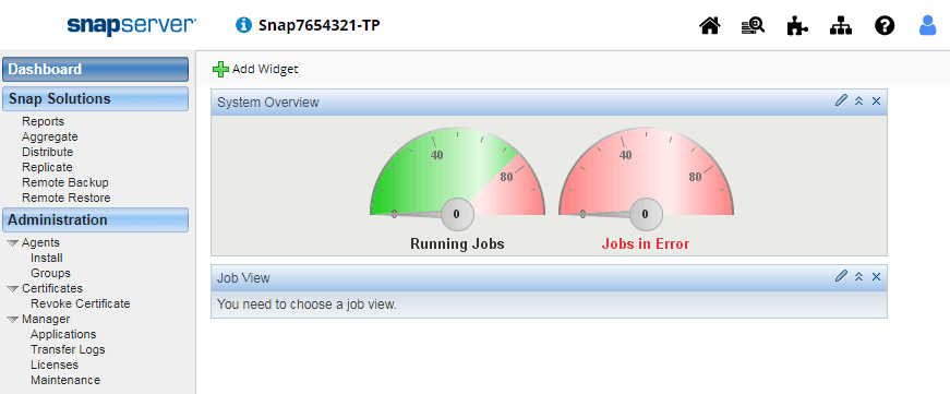 The GuardianOS WMI is the main configuration tool used when provisioning a SnapServer appliance. The WMI is the main dashboard where the entire appliance can be customized.