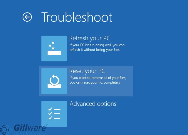 Like before, boot from the recovery media of your choosing, select “repair your computer”, click on “Troubleshoot”, and go into “Advanced Options”. Instead of choosing “Automatic Repair”, go into “Command Prompt” and run a disk scan by typing in chkdsk /r c: and pressing “Enter”.