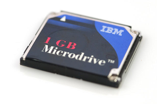 IBM created the Microdrive, a 1-inch 170MB or 340MB HDD that has long since been yielded obsolete by flash memory.