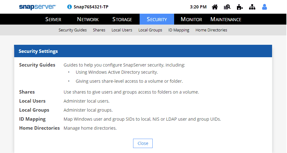 SnapServer Security