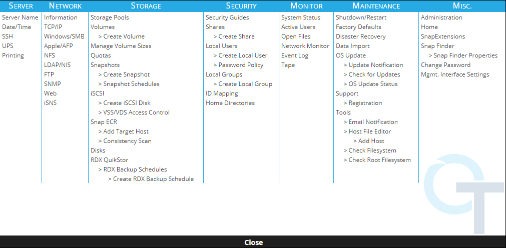 The GuardianOS WMI is the main configuration tool used when provisioning a SnapServer appliance. The WMI is the main dashboard where the entire appliance can be customized.