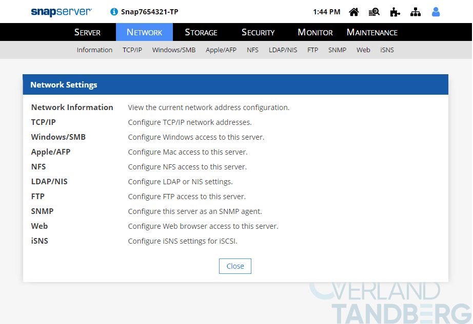 The main network configuration tools are available directly from the WMI; here, admins have direct access to set up the networking protocols, NIC bonding, and network authentication properties. SnapServers are very flexible, have extensive connectivity options, and are compatible with the vast majority of computing operating systems.
