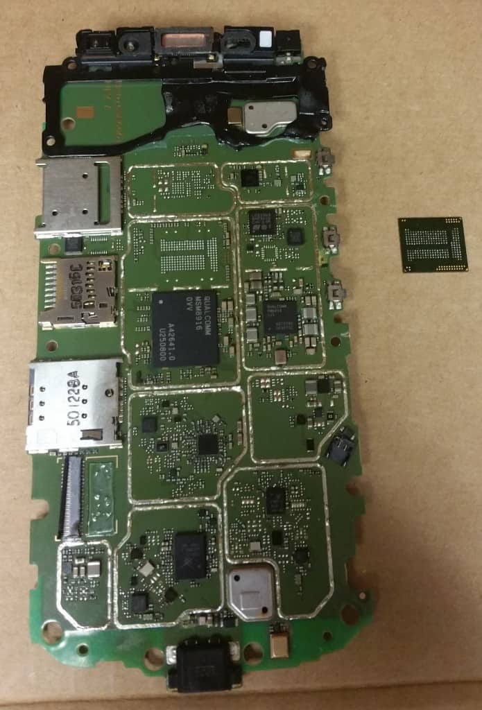 The data recovery method used in a lot of mobile device data recovery is called a “chip off“, in which engineers remove the flash memory chip from the phone and place it in a special adapter used to retrieve the lost data. However, the recovered data was not in a format that was very usable for humans. It would require SQL queries and Unix Time conversion to make a more human-friendly spreadsheet of the recovered data.