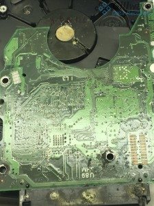 Inspection of the interior components of the three hard drives revealed that the corrosive substance hadn’t caused much damage to the data storage platters. This was a relief for all of us here at Gillware. However, the drives’ read/write heads hadn’t been so lucky. A small amount of corrosive fluid had seeped into the hard drives, complicating this RAID-5 server recovery effort. The fluid had eaten away at the read/write heads’ preamp connections. Each drive had to have its magnetic read/write heads replaced.